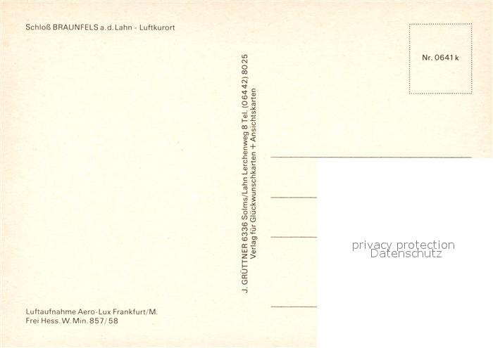 73168153 Braunfels Schloss Fliegeraufnahme postalisch nicht gelaufen Erhaltung siehe scans [KathaD81] KatCode: 11110006532003