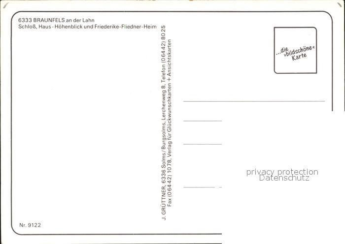 72525353 Braunfels Schloss Haus Hoehenblick und Friederike Fliedner Heim postalisch nicht gelaufen Erhaltung siehe scans KatCode: 11110006532003