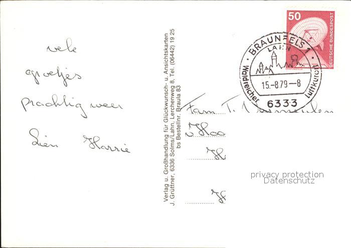 72458412 alte Postkarte Braunfels Schloss Marktplatz Kurpark postalisch gelaufen Erhaltung siehe scans KatCode: 11110006532003
