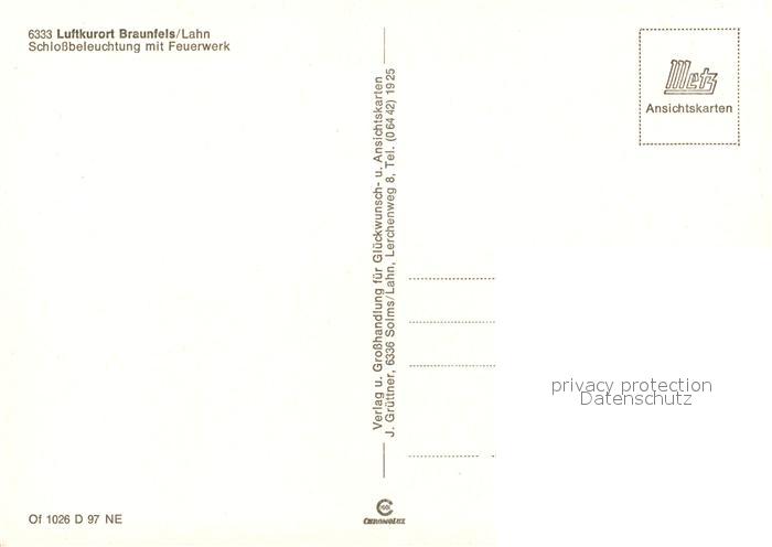 73154541 Braunfels Schlossbeleuchtung mit Feuerwerk postalisch nicht gelaufen Erhaltung siehe scans [LiesaD40] KatCode: 11110006532003