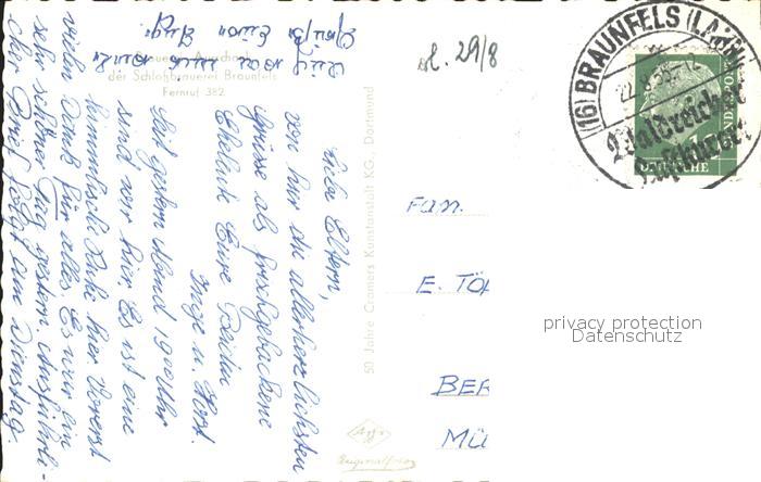 31728224 alte Postkarte Braunfels Schlossbrauerei postalisch gelaufen Erhaltung siehe scans KatCode: 11110006532003