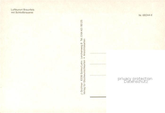 73201743 Braunfels Schlossbrauerei postalisch nicht gelaufen Erhaltung siehe scans [KathaD81] KatCode: 11110006532003