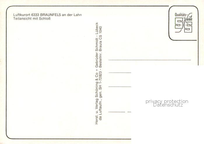 73782520 Braunfels Teilansicht m. Schloss postalisch nicht gelaufen Erhaltung siehe scans [LiesaD40] KatCode: 11110006532003