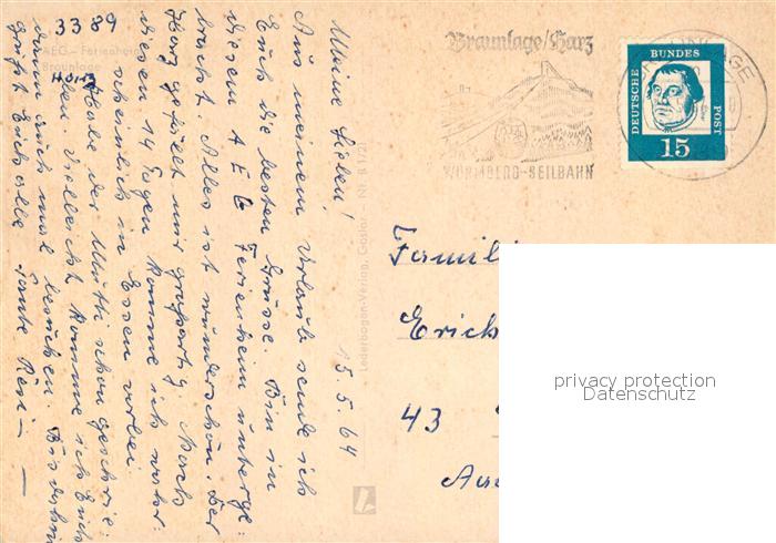 73172907 alte Postkarte Braunlage AEG Ferienheim postalisch gelaufen Erhaltung siehe scans [LiesaD40] KatCode: 11110003153003