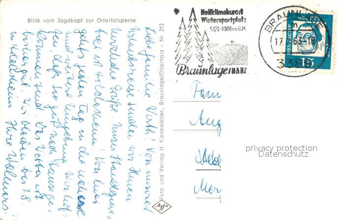 73248439 alte Postkarte Braunlage Blick vom Jagdkopf zur Odertalsperre postalisch gelaufen Erhaltung siehe scans [WerneD78] KatCode: 11110003153003