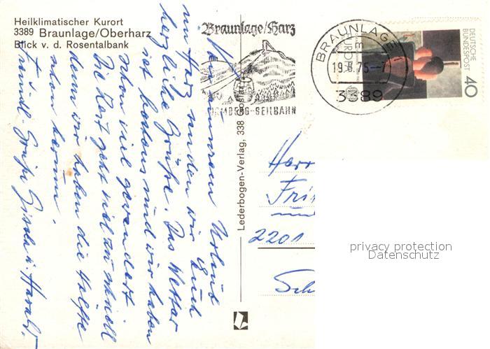 72933671 alte Postkarte Braunlage Blick von der Rosentalbank postalisch gelaufen Erhaltung siehe scans [WerneD78] KatCode: 11110003153003
