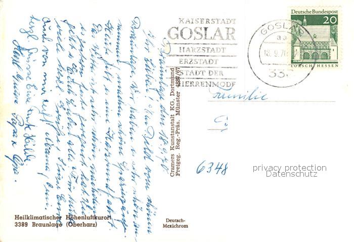 73212672 alte Postkarte Braunlage Blick zum Wurmberg Fliegeraufnahme postalisch gelaufen Erhaltung siehe scans [FriedD77] KatCode: 11110003153003