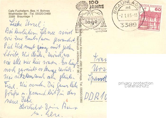 73731337 alte Postkarte Braunlage Cafe Fuchsfarm Gastraum postalisch gelaufen Erhaltung siehe scans [FriedD77] KatCode: 11110003153003