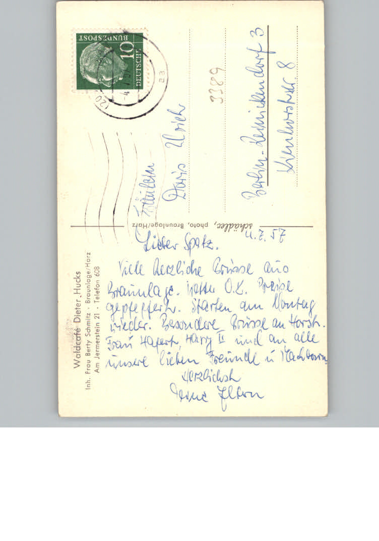 31126292 Braunlage Cafe Hucks postalisch nicht gelaufen KatCode: 11110003153003