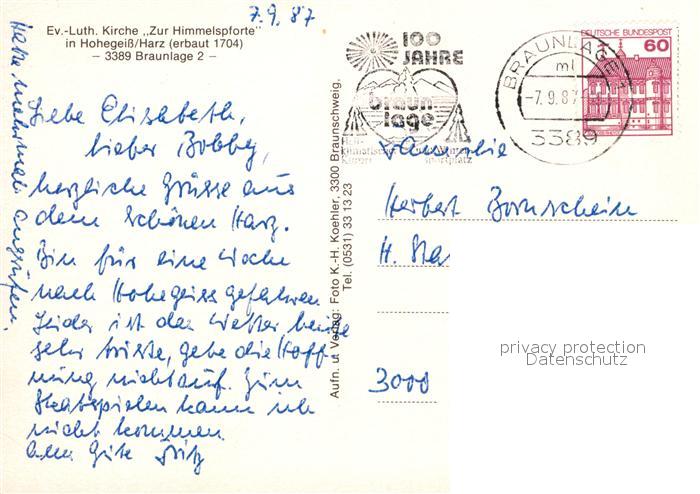 72960047 alte Postkarte Braunlage Ev Luth Kirche Zur Himmelspforte postalisch gelaufen Erhaltung siehe scans [WerneD78] KatCode: 11110003153003
