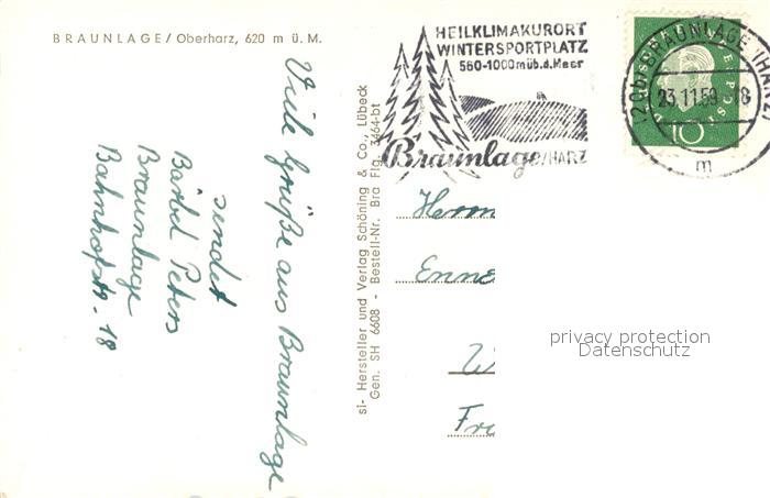73320900 alte Postkarte Braunlage Fliegeraufnahme postalisch gelaufen Erhaltung siehe scans [WerneD78] KatCode: 11110003153003