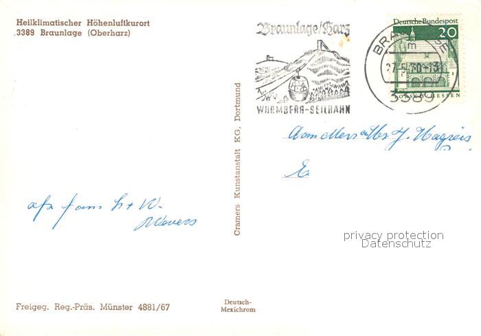 73311263 alte Postkarte Braunlage Fliegeraufnahme postalisch gelaufen Erhaltung siehe scans [KathaD81] KatCode: 11110003153003