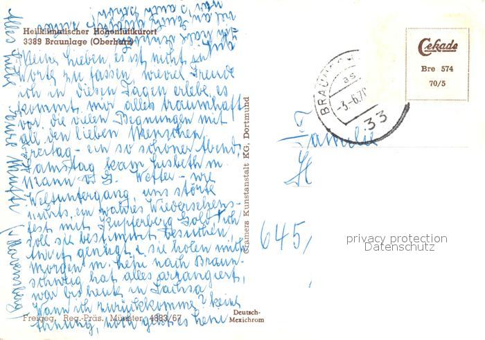73240442 alte Postkarte Braunlage Fliegeraufnahme postalisch gelaufen Erhaltung siehe scans [KathaD81] KatCode: 11110003153003