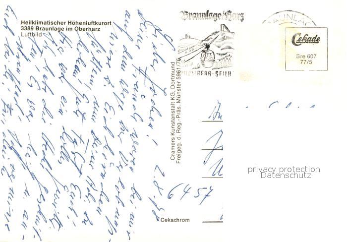 73240437 alte Postkarte Braunlage Fliegeraufnahme postalisch gelaufen Erhaltung siehe scans [KathaD81] KatCode: 11110003153003