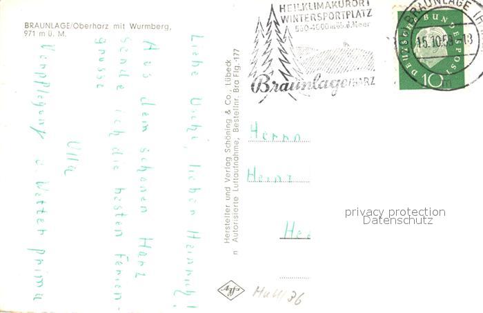 73141752 alte Postkarte Braunlage Fliegeraufnahme postalisch gelaufen Erhaltung siehe scans [NatalD47] KatCode: 11110003153003
