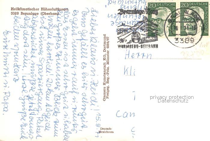 73107334 alte Postkarte Braunlage Fliegeraufnahme postalisch gelaufen Erhaltung siehe scans [NatalD47] KatCode: 11110003153003