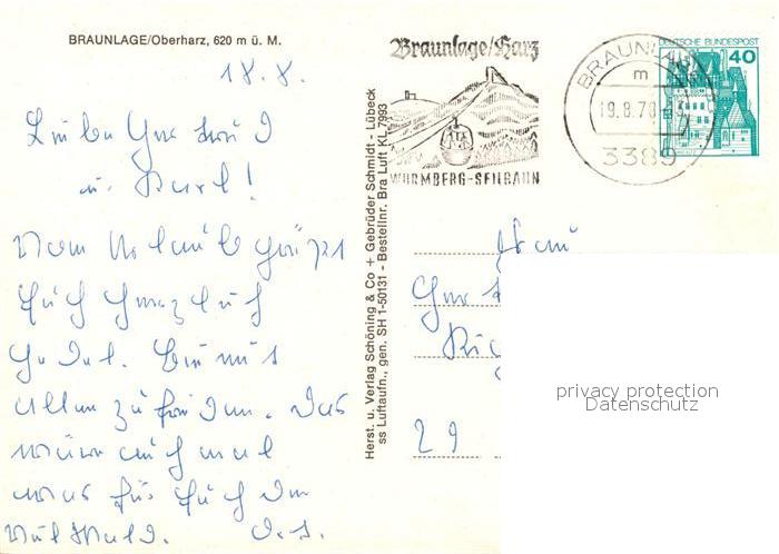 73018990 alte Postkarte Braunlage Fliegeraufnahme postalisch gelaufen Erhaltung siehe scans [WerneD78] KatCode: 11110003153003