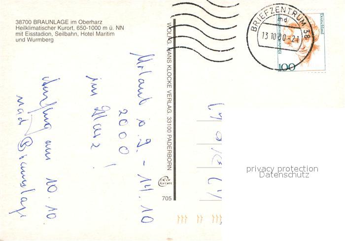 72943129 alte Postkarte Braunlage Fliegeraufnahme Eisstadion Seilbahn Hotel Maritim postalisch gelaufen Erhaltung siehe scans [KathaD81] KatCode: 11110003153003