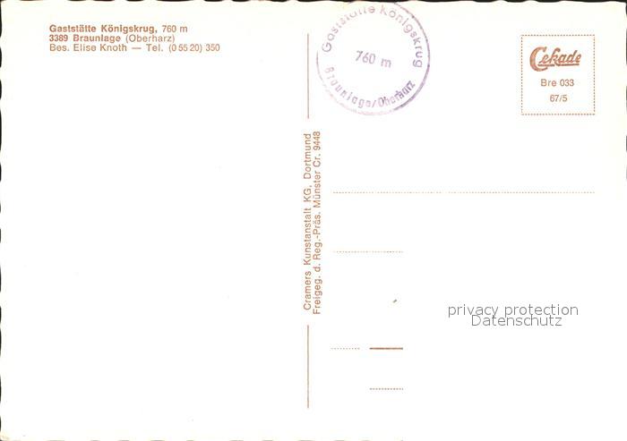 71987809 Braunlage Fliegeraufnahme Gaststaette Koenigskrug postalisch nicht gelaufen Erhaltung siehe scans Alte Ansichtskarte Postkarte Matt Katcode 11110003153003
