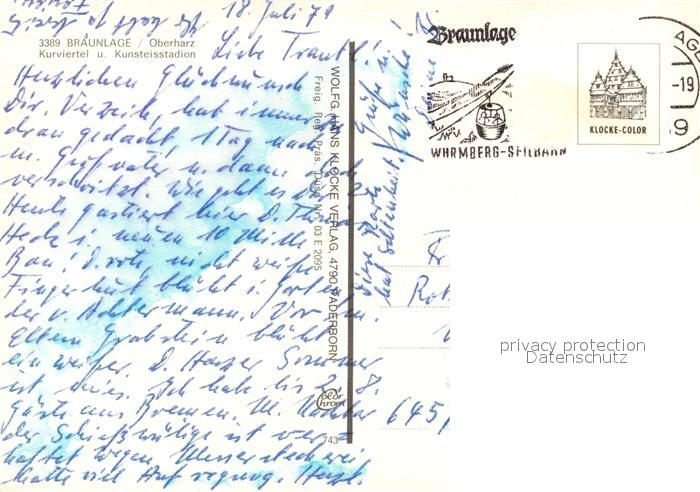 73240438 alte Postkarte Braunlage Fliegeraufnahme Kurviertel Kunsteisstadion postalisch gelaufen Erhaltung siehe scans [KathaD81] KatCode: 11110003153003