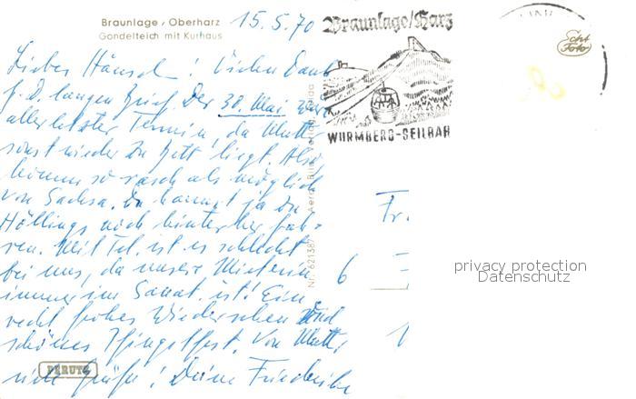73240315 alte Postkarte Braunlage Gondelteich Kurhaus postalisch gelaufen Erhaltung siehe scans [KathaD81] KatCode: 11110003153003