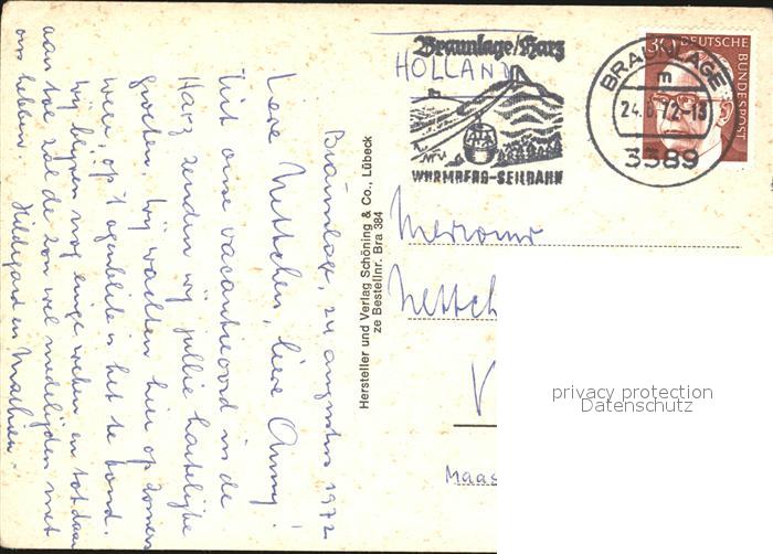 72470930 alte Postkarte Braunlage Harz postalisch gelaufen Erhaltung siehe scans KatCode: 11110003153003
