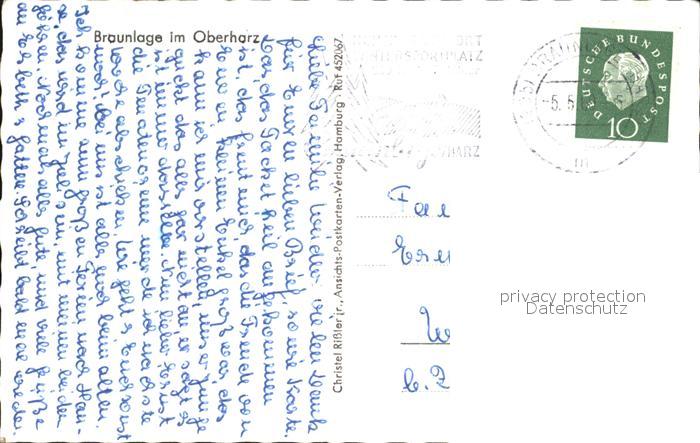 72405245 alte Postkarte Braunlage Harz postalisch gelaufen Erhaltung siehe scans KatCode: 11110003153003