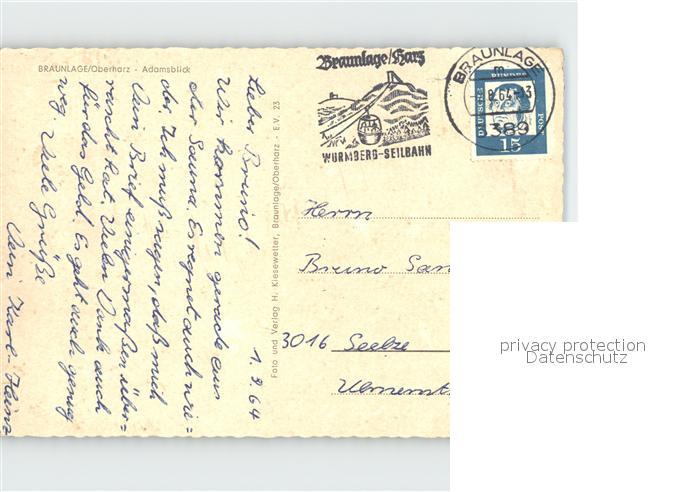 72023353 alte Postkarte Braunlage Harz Adamsblick postalisch gelaufen Erhaltung siehe scans KatCode: 11110003153003