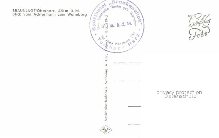 72892404 Braunlage Harz Blick vom Achtermann zum Wurmberg postalisch nicht gelaufen Erhaltung siehe scans [PaolaD17] KatCode: 11110003153003