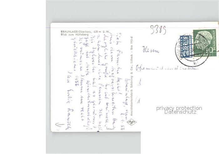 41619639 Braunlage Harz Blick zum Huetteberg postalisch gelaufen Alte Ansichtskarte Postkarte alte Postkarte hz_L Katcode 11110003153003