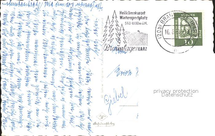 71925705 alte Postkarte Braunlage Harz Brocken Wurmberg postalisch gelaufen Erhaltung siehe scans KatCode: 11110003153003