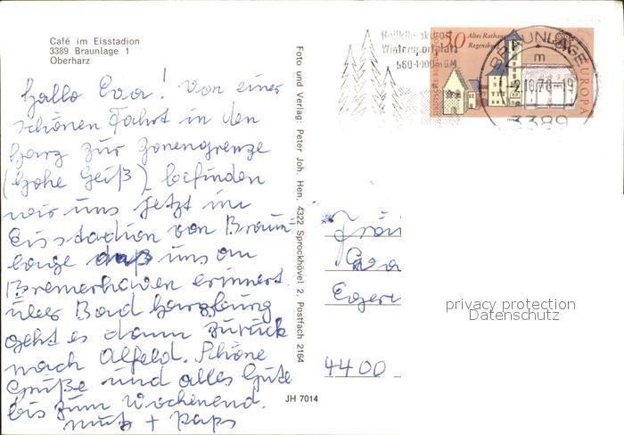 71946897 alte Postkarte Braunlage Harz Cafe am Eisstadion postalisch gelaufen Erhaltung siehe scans KatCode: 11110003153003