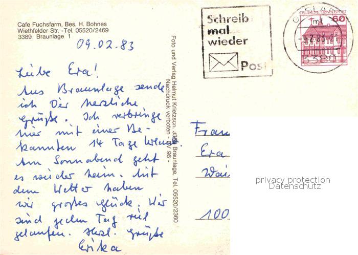 72671307 alte Postkarte Braunlage Harz Cafe Fuchsfarm postalisch gelaufen Erhaltung siehe scans [NatalD47] KatCode: 11110003153003