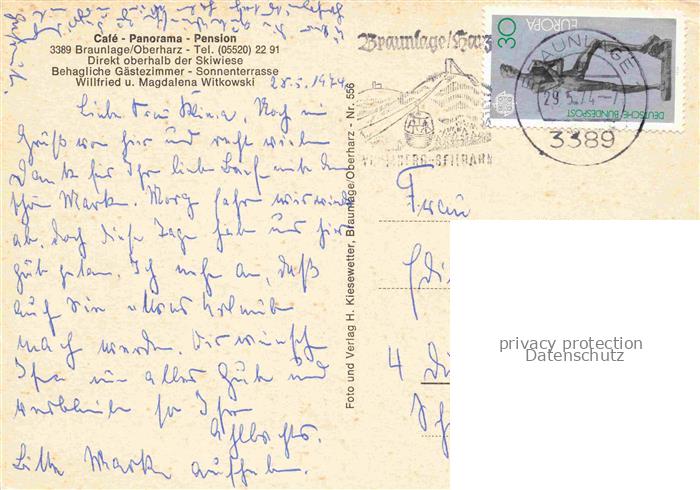 74100302 alte Postkarte Braunlage Harz Café Pension Panorama im Winter Nachtaufnahme postalisch gelaufen Erhaltung siehe scans [FriedD77] KatCode: 11110003153003