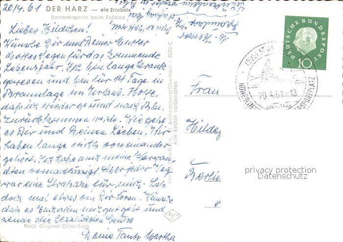 72271658 alte Postkarte Braunlage Harz Damenkapelle Fussbad postalisch gelaufen Erhaltung siehe scans KatCode: 11110003153003