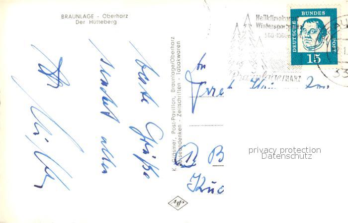 43352233 Braunlage Harz Der Huetteberg postalisch gelaufen Erhaltung siehe scans [WerneD78] alte Postkarte Wern Katcode 11110003153003