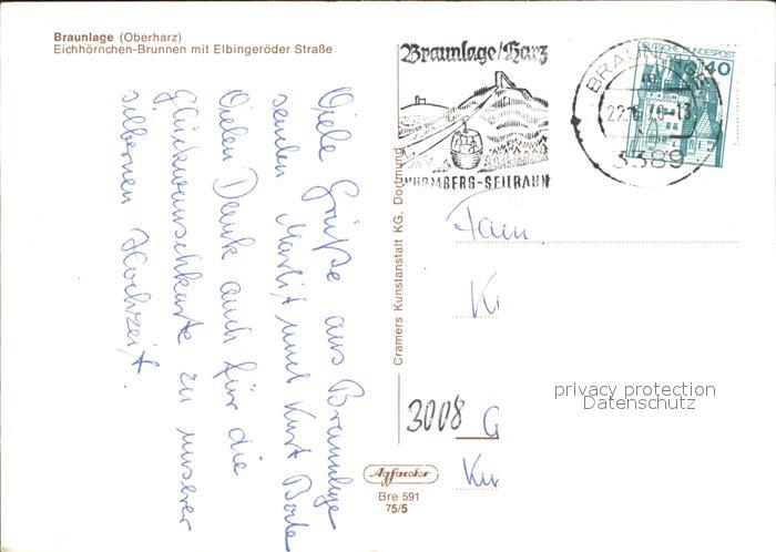 72010235 alte Postkarte Braunlage Harz Eichhoernchen Brunnen Elbingeroeder Strasse postalisch gelaufen Erhaltung siehe scans KatCode: 11110003153003