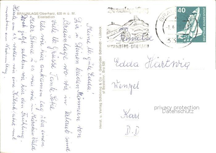 72285007 alte Postkarte Braunlage Harz Eisstadion postalisch gelaufen Erhaltung siehe scans KatCode: 11110003153003