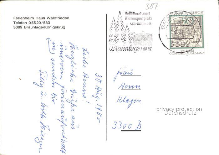 72606475 alte Postkarte Braunlage Harz Ferienheim Haus Waldfrieden postalisch gelaufen Erhaltung siehe scans [NatalD47] KatCode: 11110003153003