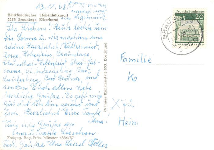 73883493 Braunlage Harz Fliegeraufnahme postalisch gelaufen Erhaltung siehe scans [WerneD78] alte Postkarte Wern Katcode 11110003153003