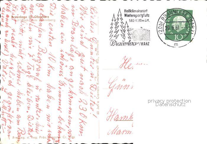 72286614 alte Postkarte Braunlage Harz Fliegeraufnahme postalisch gelaufen Erhaltung siehe scans KatCode: 11110003153003