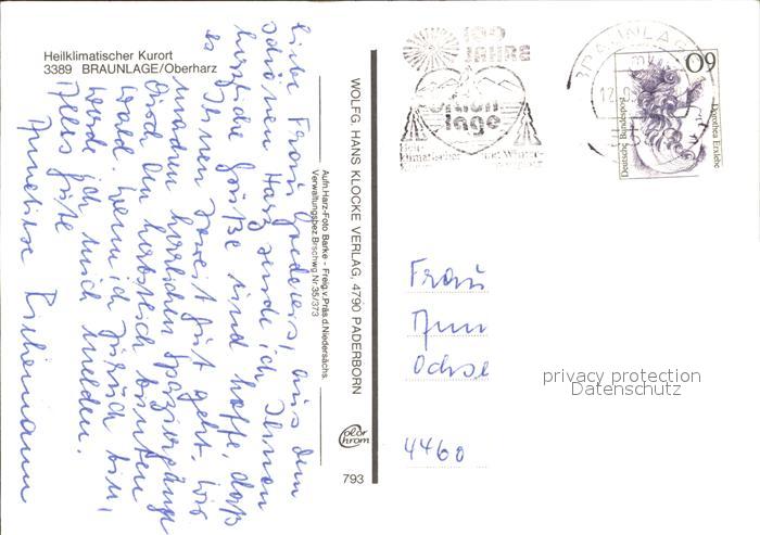 72231653 alte Postkarte Braunlage Harz Fliegeraufnahme postalisch gelaufen Erhaltung siehe scans KatCode: 11110003153003
