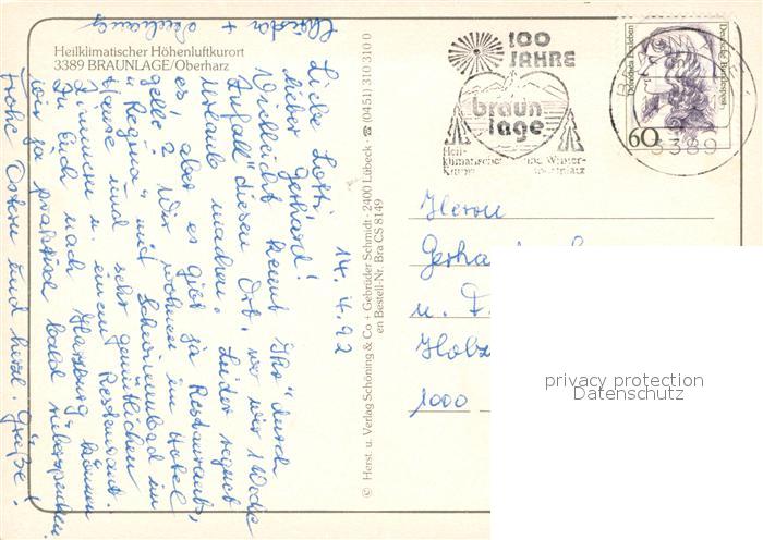 73714920 Braunlage Harz Fliegeraufnahme postalisch gelaufen Erhaltung siehe scans [WerneD78] alte Postkarte Wern Katcode 11110003153003