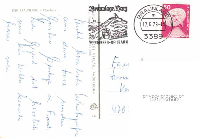 72709899 alte Postkarte Braunlage Harz Fliegeraufnahme postalisch gelaufen Erhaltung siehe scans [FriedD77] KatCode: 11110003153003