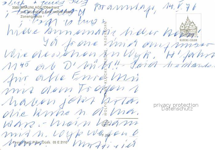 72890252 Braunlage Harz Fliegeraufnahme mit Wuermberg postalisch nicht gelaufen Erhaltung siehe scans [AndreD76] KatCode: 11110003153003