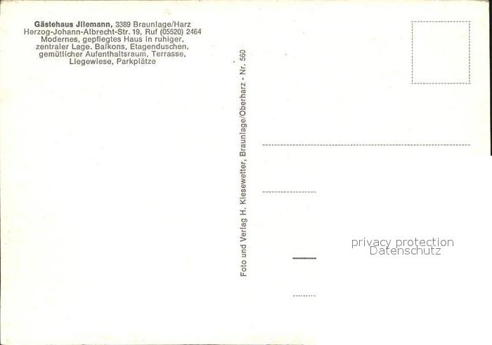 72455915 Braunlage Harz Gaestehaus Illemann postalisch nicht gelaufen Erhaltung siehe scans KatCode: 11110003153003