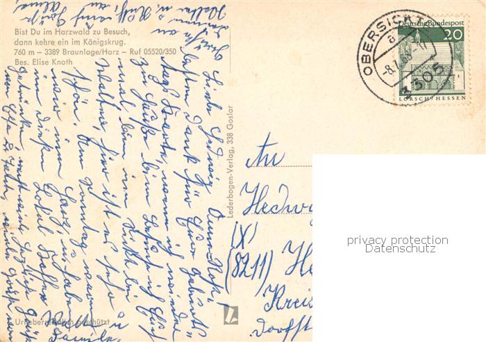 73758741 Braunlage Harz Gasthaus Koenigskrug Aussenansicht Harzwald postalisch gelaufen Erhaltung siehe scans [LiesaD40] alte Postkarte Lies Katcode 11110003153003