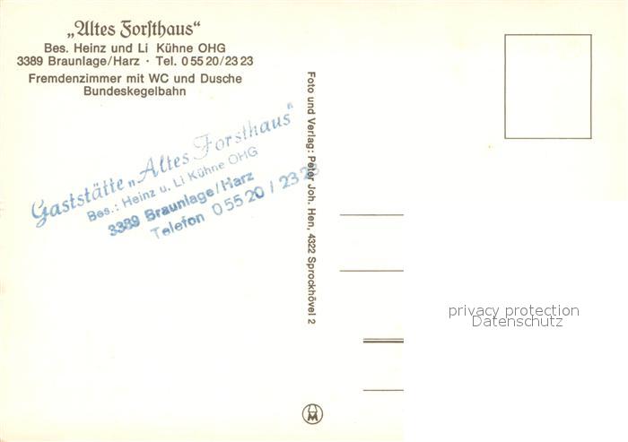 73730626 Braunlage Harz Gaststaette Altes Forsthaus postalisch nicht gelaufen Erhaltung siehe scans [LiesaD40] Lies Katcode 11110003153003