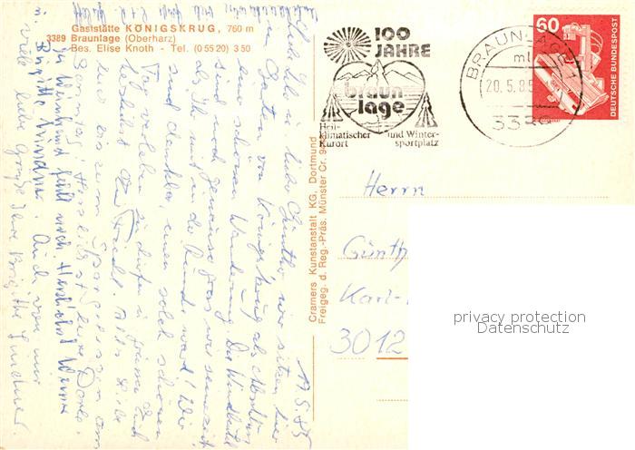73827263 Braunlage Harz Gaststaette Koenigsberg Fliegeraufnahme postalisch gelaufen Erhaltung siehe scans [WerneD78] alte Postkarte Wern Katcode 11110003153003