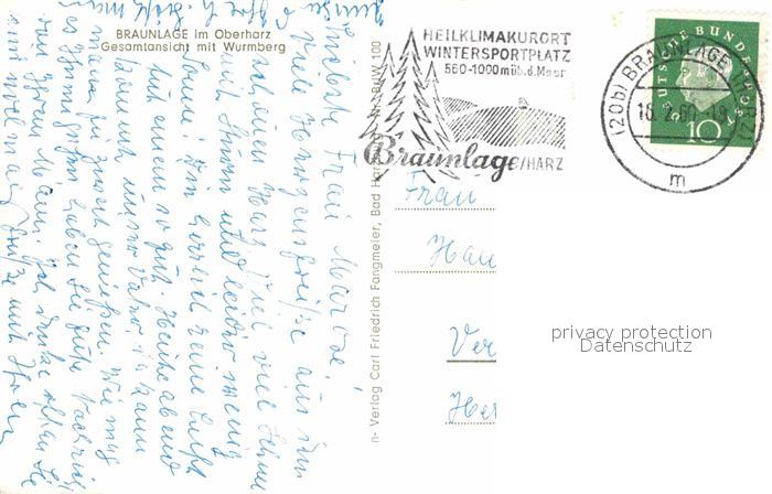 72769310 alte Postkarte Braunlage Harz Gesamtansicht mit Wurmberg postalisch gelaufen Erhaltung siehe scans [AndreD76] KatCode: 11110003153003